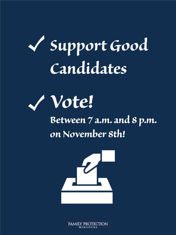 On Tuesday, November 8th, between 7:00 a.m. and 8:00 p.m., we have the opportunity to go to the polls, exercise our God-given responsibilities and rights, and send a message concerning the direction that our government should take over the course of the next few years.